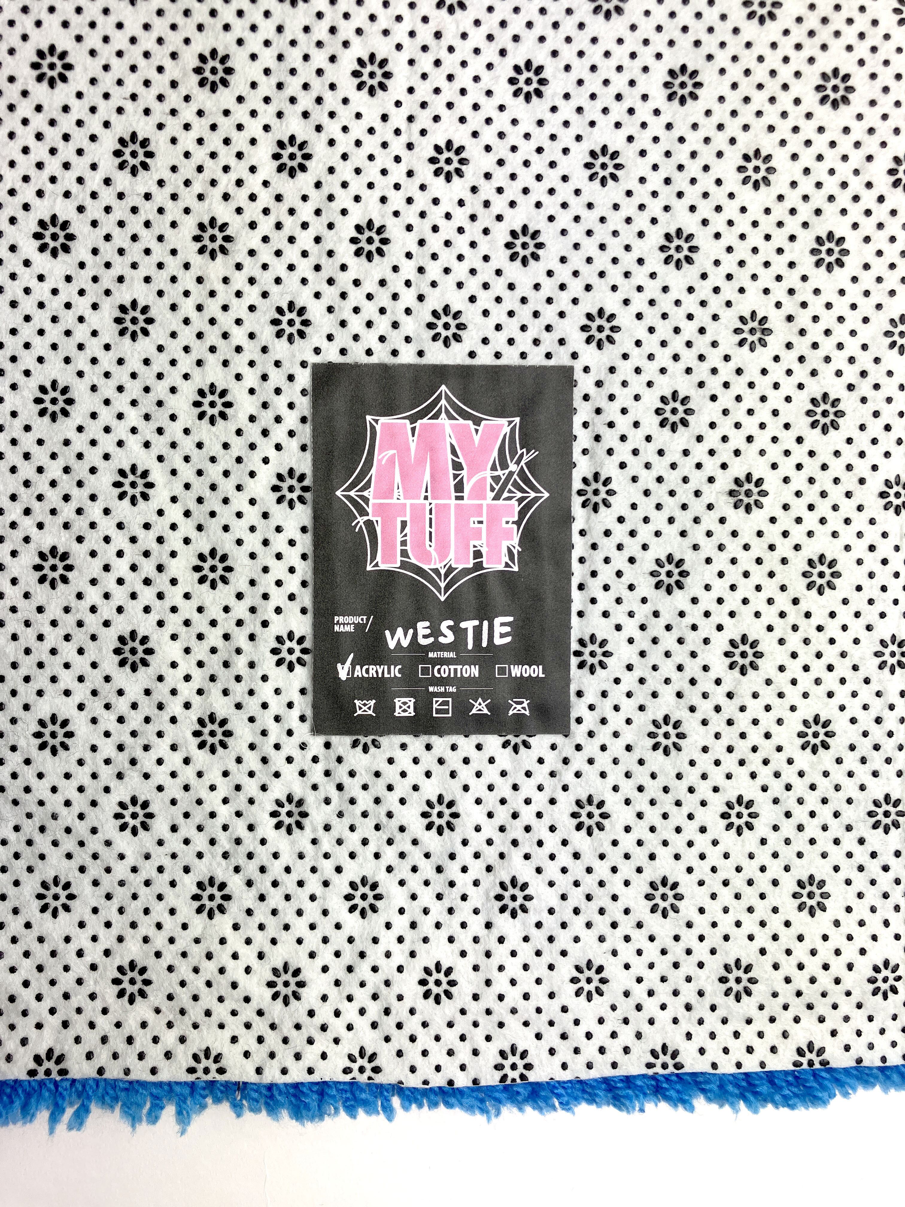 赤いリボンをつけたウエスト・ハイランド・ホワイト・テリアのハンドメイドラグです。